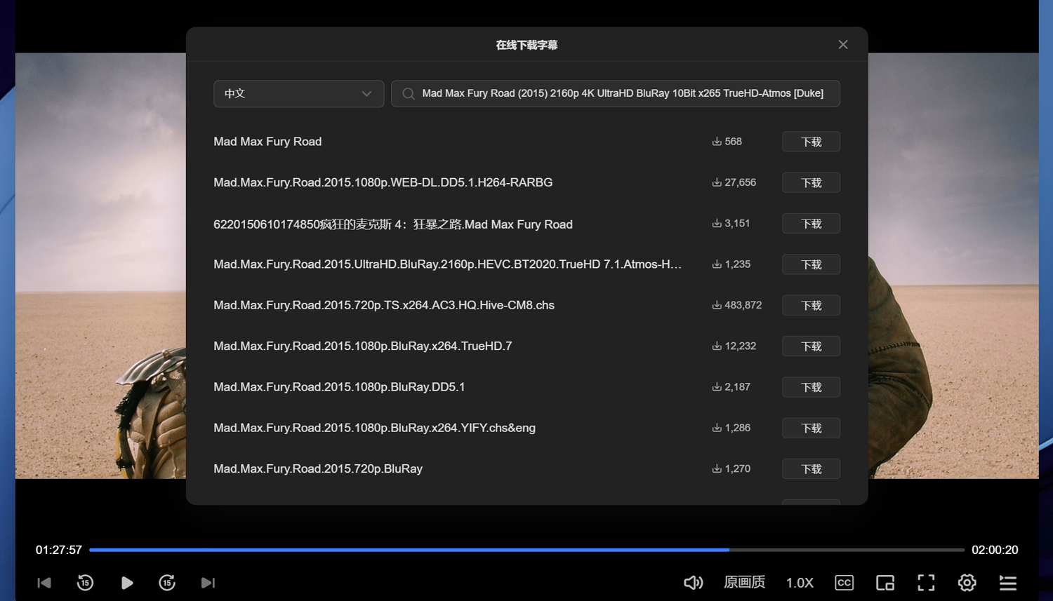 在播放体验上,绿联云影院同样表现出色。除了基础播放控制外,还支持倍速播放、画中画模式、多画质切换,以及在线字幕搜索与下载。对于像我这样偶尔收藏“生肉”资源的用户来说,再也不用费时费力去找字幕文件,简直是刚需。