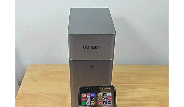 只需将绿联DH2300接上网线并开机,如果手头有支持NFC功能的手机,轻轻碰一下机箱正面的NFC感应区,就能自动打开绿联云App。