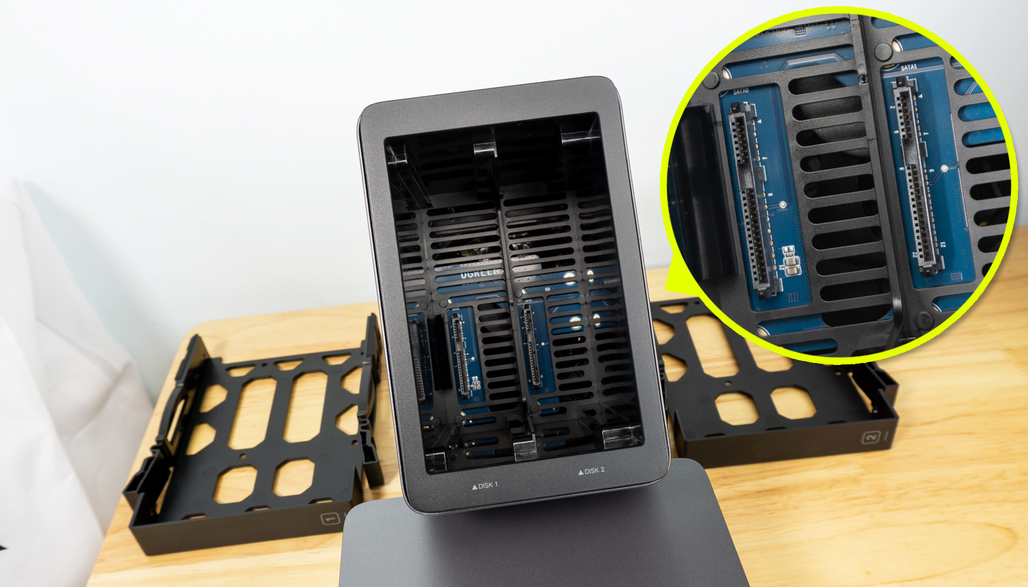 告别复杂设置绿联DH2300的硬盘位采用竖插式安装,与常见的横向推拉式方案形成鲜明对比,带来耳目一新的视觉体验。
