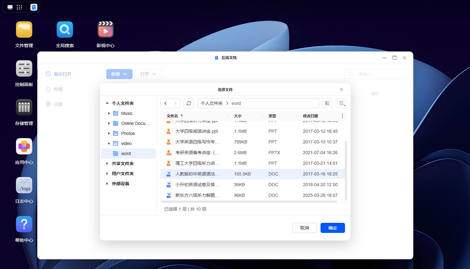 开通外网访问后,我们可以将工作中常用的报告、PPT演示稿、视频素材等文件上传至绿联DH2300。外出时,通过“文件管理”功能便能随时下载或分享这些资料。