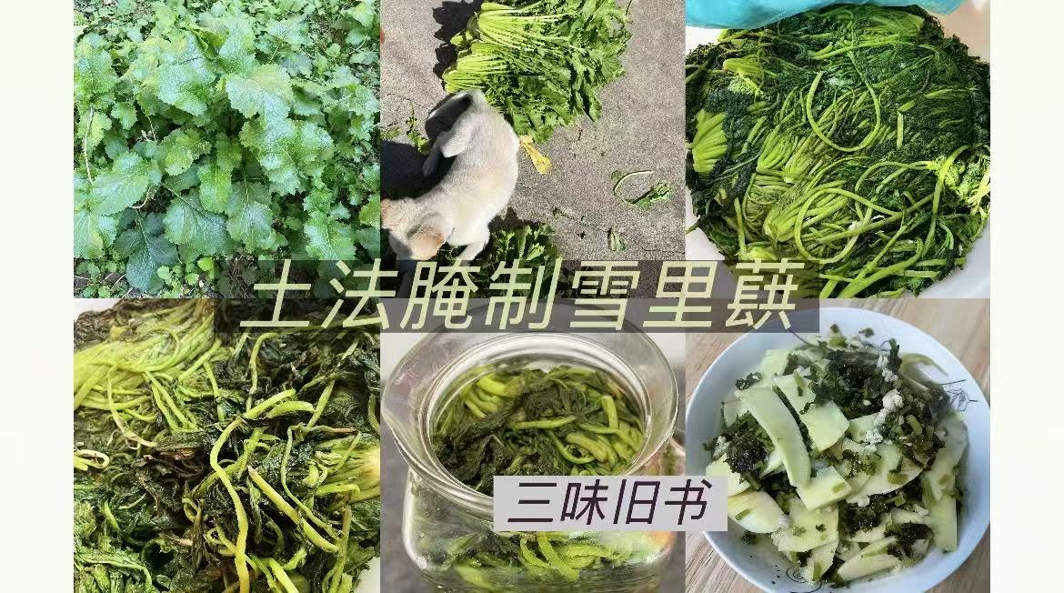 笔者小时候见过奶奶用一种较为古老的土法腌制雪里蕻。她一般将腌制好的雪里蕻放小甏中,甏口用稻草、黄泥封口,而后将甏放倒,卤水会自然流出,半个月左右,打开即可食。此种腌制方法较古朴,此处记之,供参考。
