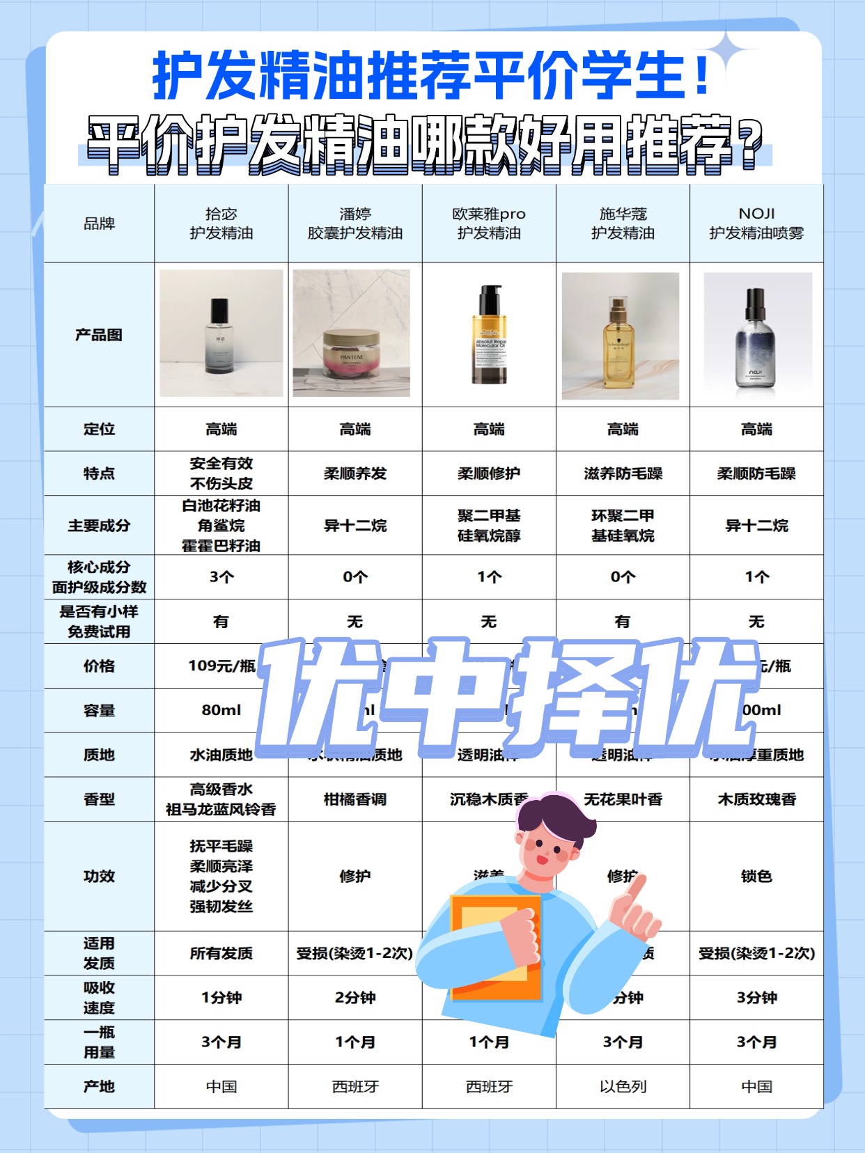 学生党宝子们看过来!总有人问 “护发精油有必要买贵的吗”“护发精油多久用一次”,作为测评过几十款平价精油的博主,今天就说实话!其实护发精油真没必要盲目追贵的,平价款里也有成分扎实的,只要含霍霍巴油、白池花籽油这些经典滋养成分,能改善毛躁、修护发尾就够了。使用频率也不用太高,一般每周 2-3 次就行,洗完头用毛巾吸干水分,头发半干的时候涂,短发 1 滴、中长发 2-3 滴,搓热后涂在发中到发尾,用量多了反而会油腻扁塌。我自己作为学生党时也经常用平价款,只要选对了,效果完全不输贵价。下面是我总结的一些平价护发精油选购注意事项,干货满满,预算有限的宝子赶紧点赞收藏!