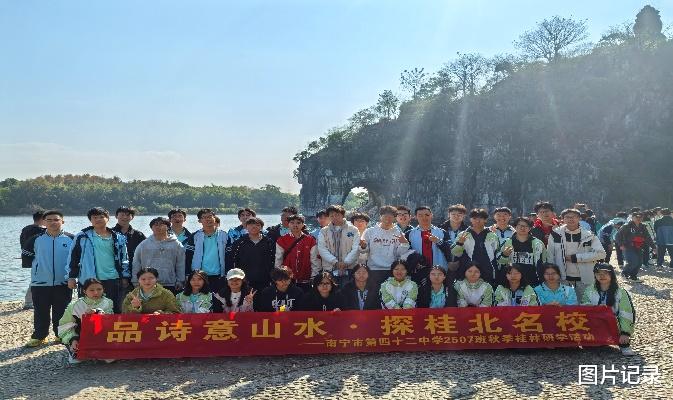近日,南宁市第四十二中学组织高一年级508名学生,前往桂林开展了为期三天的研学实践活动。本次活动以“品诗意山水·探桂北名校”为主题,通过“校方主导+基地协同”的模式,在班主任、教官与研学导师的全程带领下,将理论讲解、实地体验与互动实践深度融合,引导学生在行走中探索,于体验中成长,生动诠释了“知行合一”的教育理念。