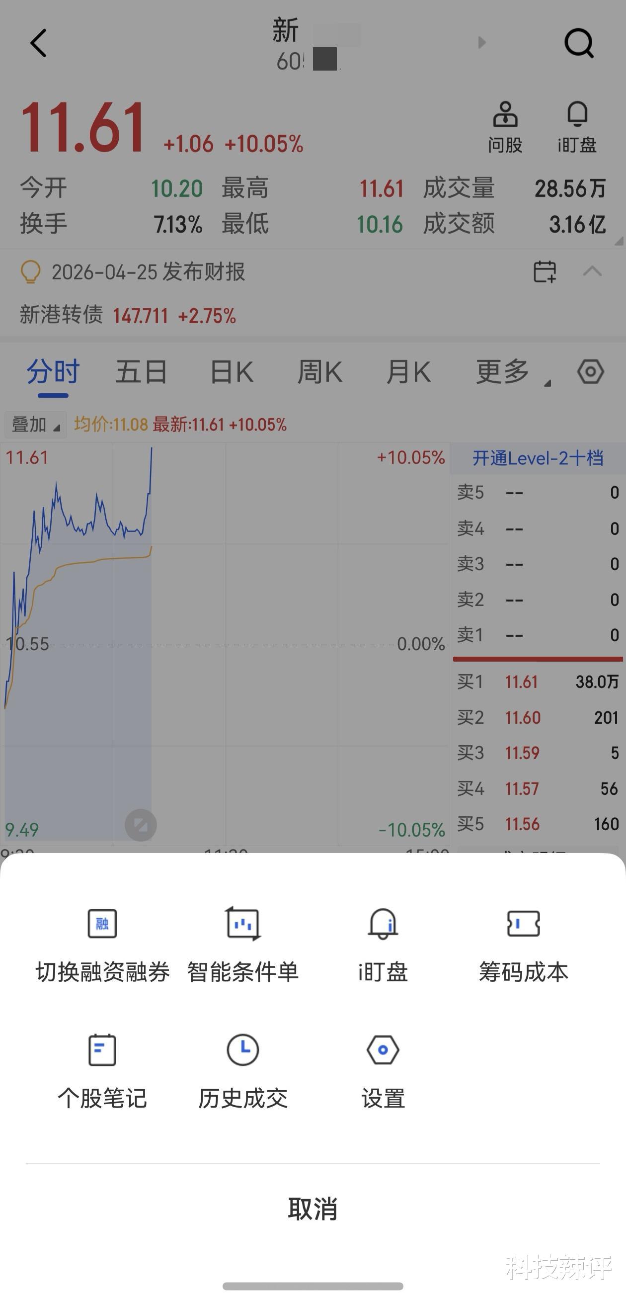 投资工具一键直达:行情详情页右下角“更多”新增智能条件单、筹码成本、个股笔记、历史成交等快捷入口,专业投资工具随手调用,投资操作高效加倍。
