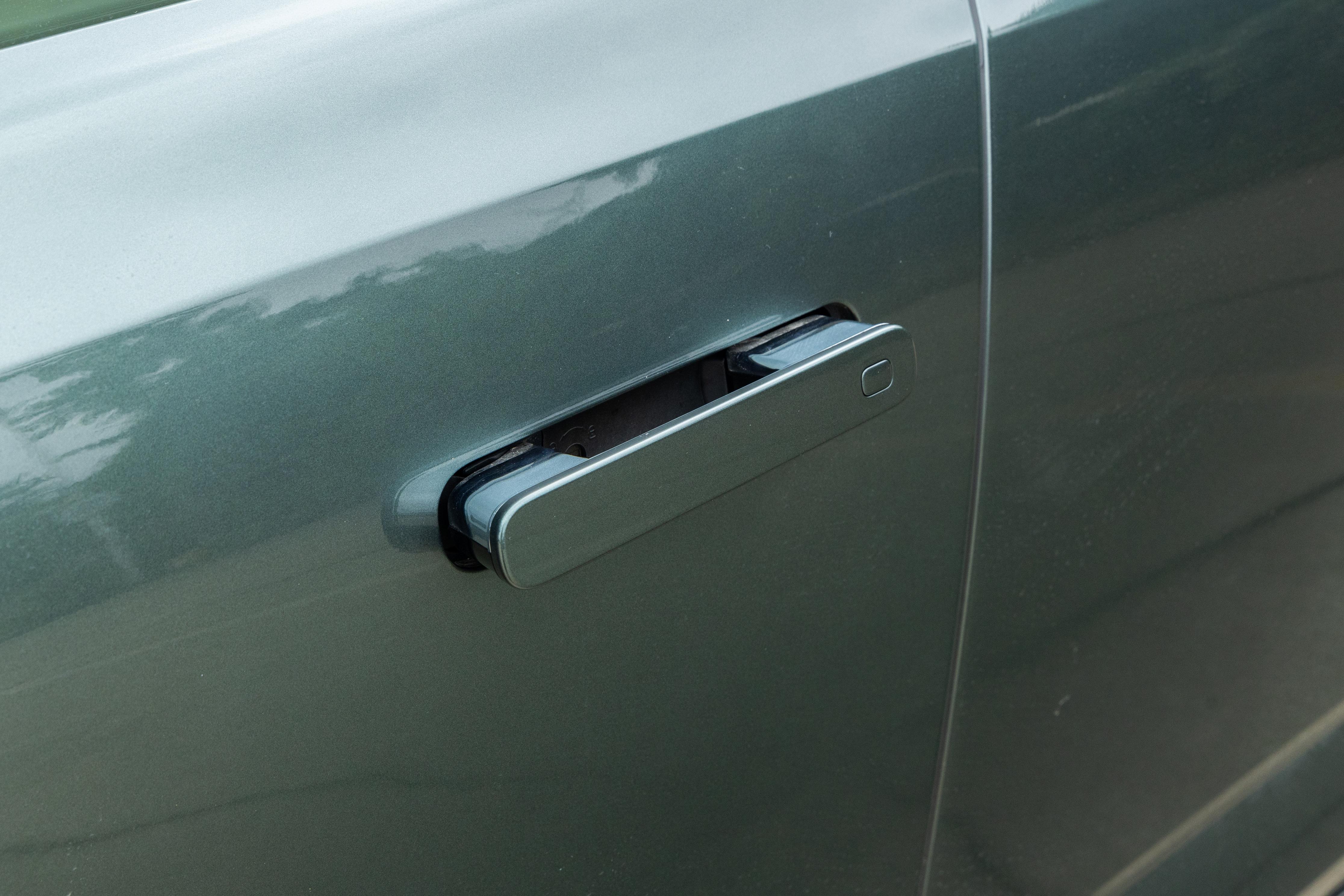 侧面的纯平车门搭配隐藏式门把手,在冬季使用优势很明显。隐藏式门把手不会像传统门把手那样积雪结冰,每次开门都很顺畅,不用先清理积雪。电动吸合门和感应开门功能在雪天更是刚需,手里拎着年货或者抱着孩子的时候,用脚在车门下方轻轻一扫就能开门,不用费力掏钥匙或者推拽车门。我试驾的这款配备20英寸轮毂,稳重的样式搭配雪地胎,在积雪路面行驶时视觉上就很扎实。
