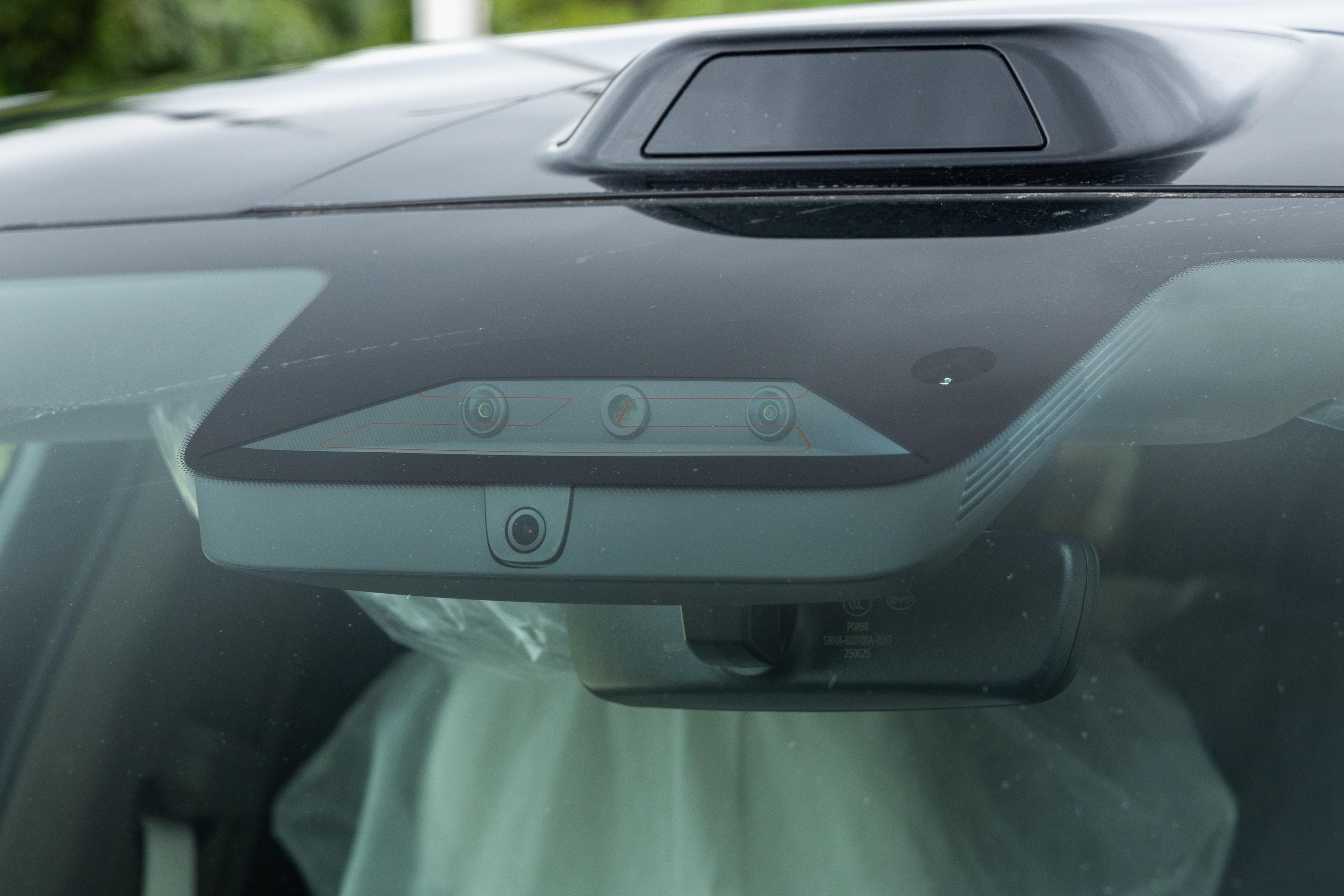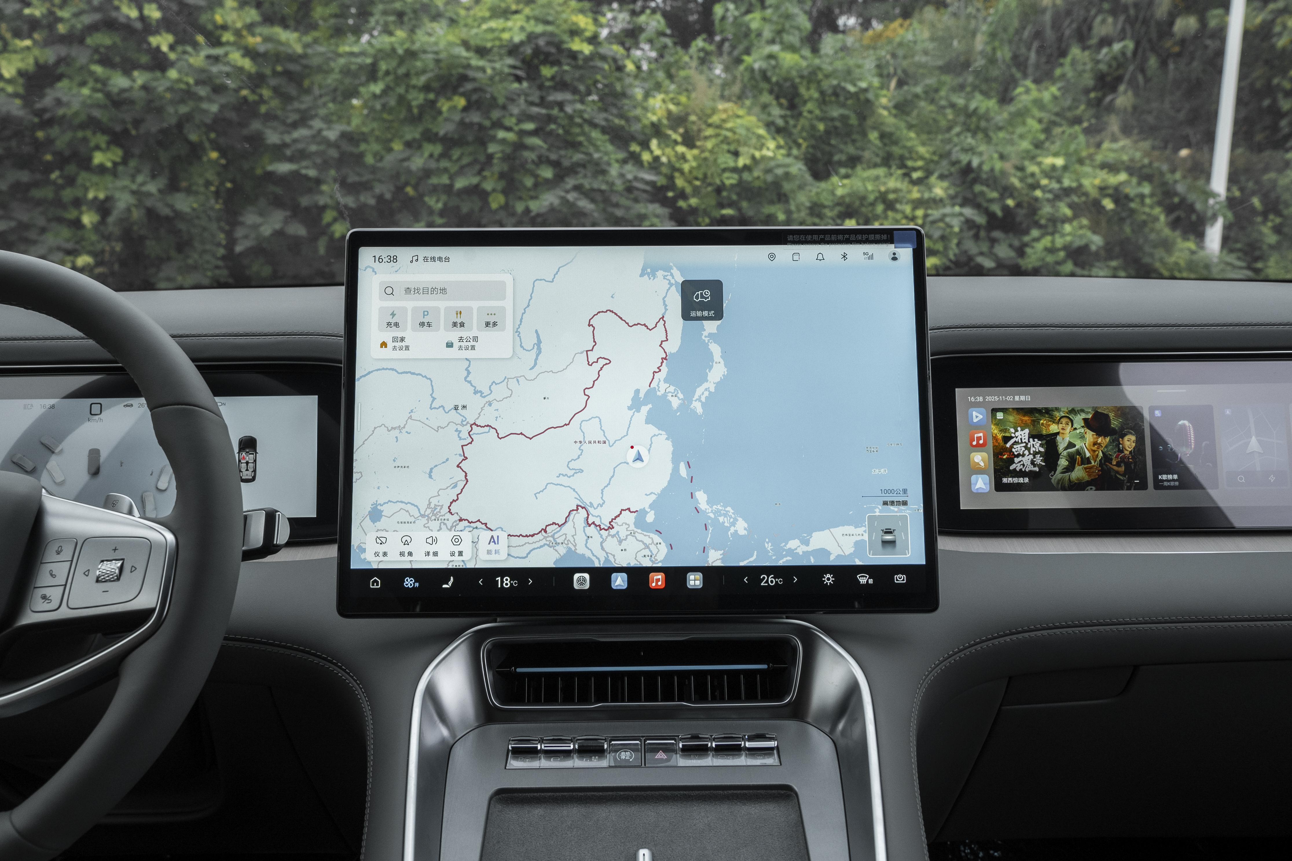方向盘握起来手感饱满,表面材质在冬季不会发凉,上面的按键布局清晰,操作起来很顺手,戴着手套也能准确操作。中控17.3英寸的大屏很显眼,配合仪表屏、副驾娱乐屏和抬头显示,组成了多屏联动系统,信息显示全面。雪天视线不好,抬头显示能将导航、车速等关键信息投射到前挡风玻璃上,不用低头看屏幕,提升了驾驶安全性。流媒体后视镜在雪天的优势尤为明显,能清晰显示后方路况,解决了传统后视镜被积雪遮挡或者起雾的问题,消除了视野死角。