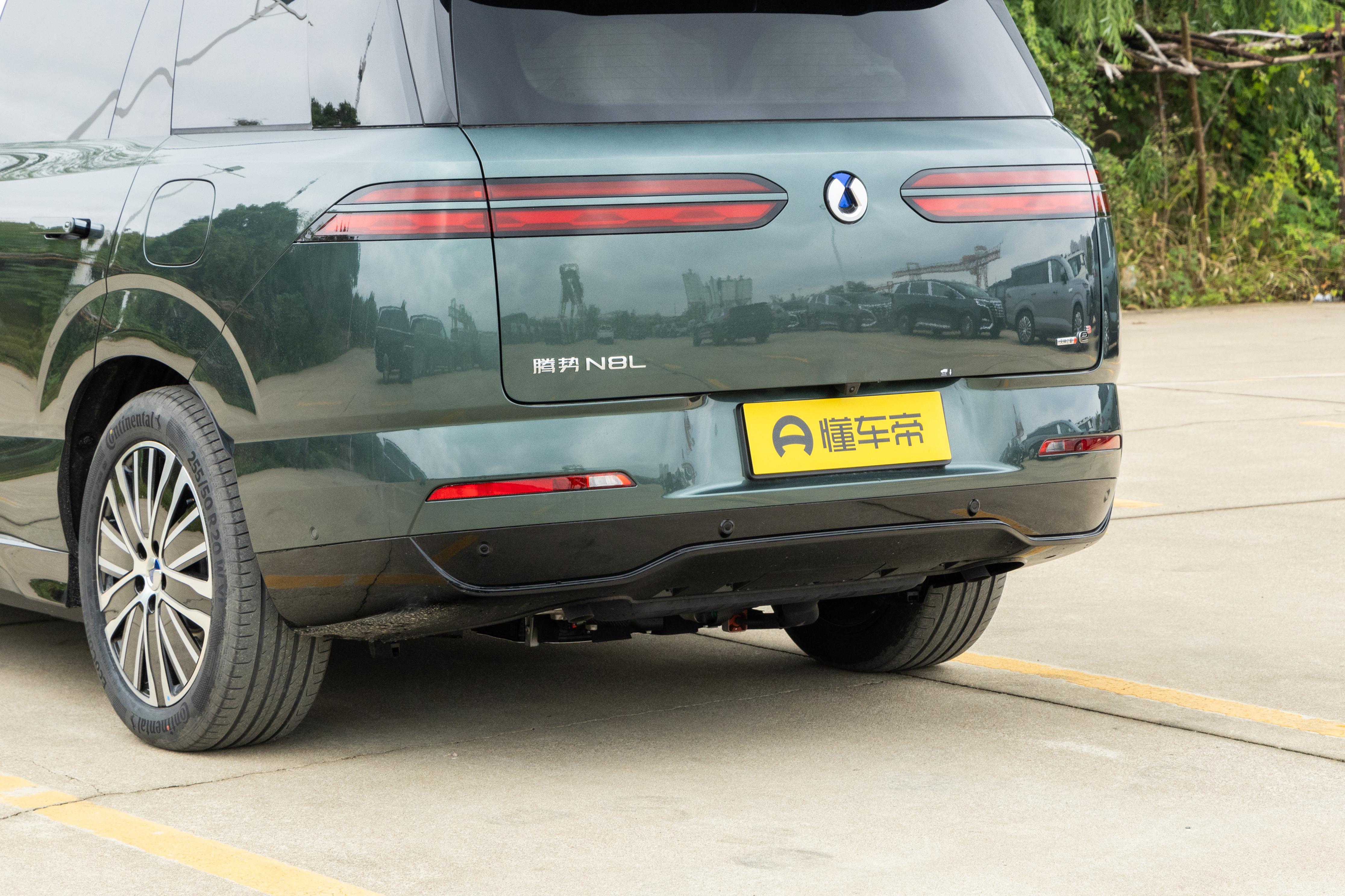 即便裹着一层薄雪,腾势N8L的外观依旧保持着沉稳耐看的调性。这款车的体量不小,整车尺寸达到5200*1999*1820mm,轴距更是长达3075mm,但流畅的线条让它在积雪中看起来并不笨拙。对于冬季用车来说,外观设计里的实用细节往往比颜值更重要。