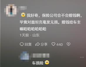 对于小轿车撞上装甲车的这一幕,网友们表示惊讶,也纷纷在评论区整活: