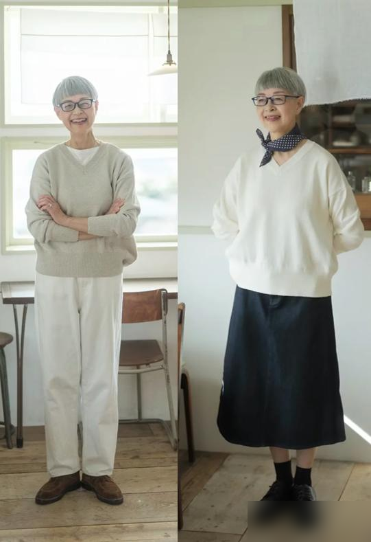 对于年龄大的女人, 选择宽松的衣服搭配高腰裤或裙子,既能隐藏腰部多余的赘肉,又能保持整体造型的舒适度和时尚感。