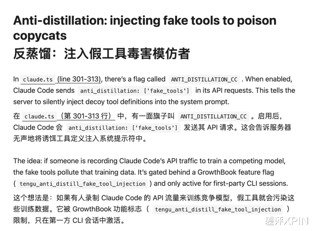 甚至有人把 Anthropic 的反作弊机制给扒出来了,发现他们为了防止别人偷偷蒸馏自己的模型,会悄悄地在聊天记录里,塞点有的没的虚假记录。