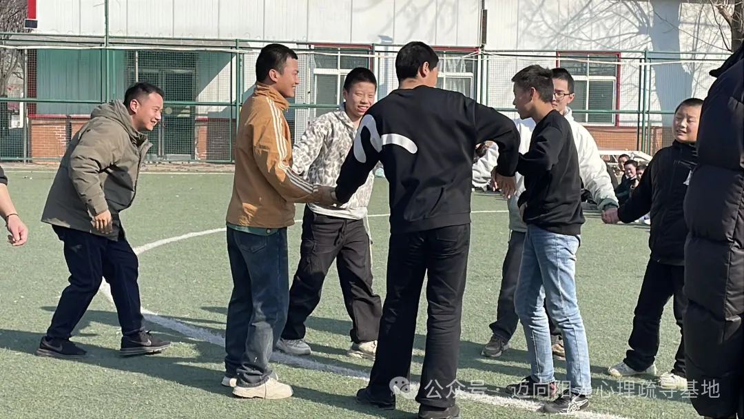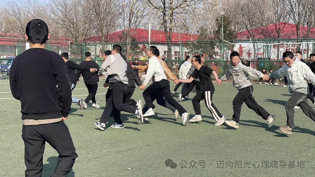 这个名为 “桃花朵朵开” 的游戏,是我们今天的“开胃菜”。对于很多刚来基地时内向、孤僻、不愿与人接触的孩子来说,主动去拥抱别人曾经是件很难的事。但在今天的阳光下,我们看到他们放下了防备,为了集体的“生存”而奋力奔跑、寻找组织。那一张张因为奔跑而红扑扑的脸蛋,写满了久违的纯粹和快乐。这一刻,没有“问题少年”,只有一群需要爱与归属感的孩子。