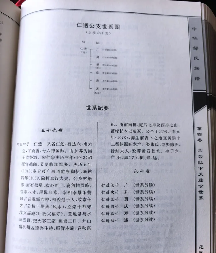 仲霖公是宜黄崇九都中田人,北宋政和元年辛卯(1111)主修完成了《宜川邹氏宗谐》。此谱体从苏式,长幼皆尊,吊仿欧型,亲疏并重,并撰有详实的《谱序》,为后人考祖溯源留下了宝贵的资料。他所纂之《邹谱》,比邹浩主纂之《山东河南邹氏族谱》晚二十三年。邹谱又进行过多次重修,为达到"廓本培源,扶义翼教,使民各亲其亲,各长其长,而伦纪班班可考"的目的。这与宋代统治者重建宗法制度的目标是一致的。以满足族人"家乘所宜急焉"的需求。内容、形式已趋成熟的邹谱,引起了最高统治者和理学家的关注。