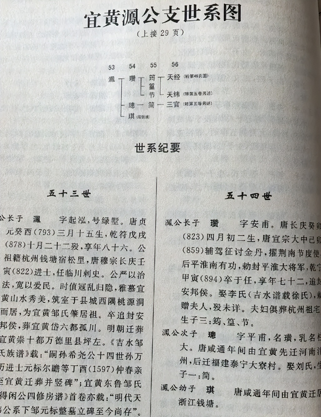 邹姓是一个古老的家族,记载邹姓历史的谱牒有悠久的历史。先秦时期,在记录天子和诸侯世系的牒记中,就留下了邹姓人物的踪迹。如"三邹子"之首的邹忌,乃邹氏十一世祖,以善谏和推行改革闻名于世,以致"凡游说之士,闻忌之名,无人敢人齐者"。他在当时的官谱中肯定有一席之地。这类"谱牒旧闻"后来成为司马迁在《史记》中记载"三邹子"世系、言行的重要依据。从西汉到南北朝,邹姓中的佼佼者也都录入了谱牒之中。在唐代,据邹谱专家的研究,邹氏祖先搜集先辈留下的官谱残篇、手记和传说,经过多代人的积累,编辑了邹氏源流世系,形成了邹谱的雏型。