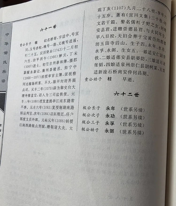 邹谱的定型是在宋代。宋哲宗元二年(1087),哲宗颁修家谱诏没儿天,更部侍郎邹浩立即上表"俯陈家乘",胸有成竹地简要叙述了邹姓家史,其中包含着他对家谱的性质、内容、作用的见解。原来他在是年秋月就已阅读过山东、河南修的邹谱,并为之作序。
