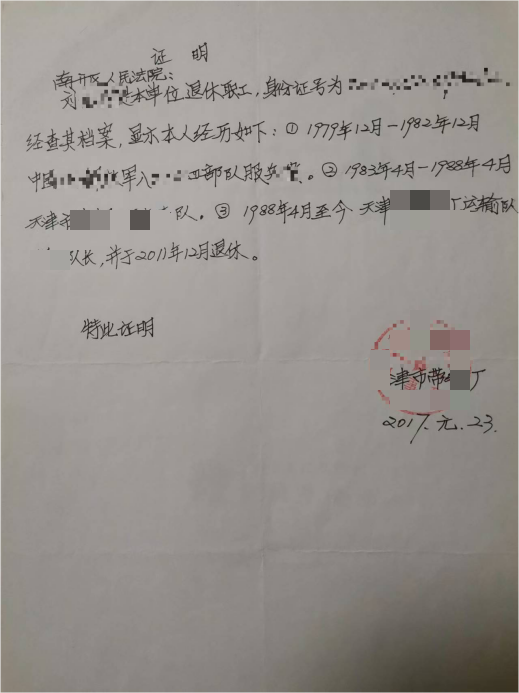 履行护国义务期间他表现格外突出,斩获三等功1次、新长征青年突击手称号1次、嘉奖12次,参加卫国任务证是其参加卫国任务及负伤的重要凭证,可他称三等功奖章被天津市南开区法院拿走,对方拒不承认,对此他愿承担法律责任,只求追回奖章。复退后,刘先生先后在天津市轧钢一厂、带钢厂工作,后任运输队队长,2014年退休后退休金微薄。