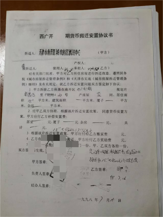 (安置协议书,刘先生提供)
