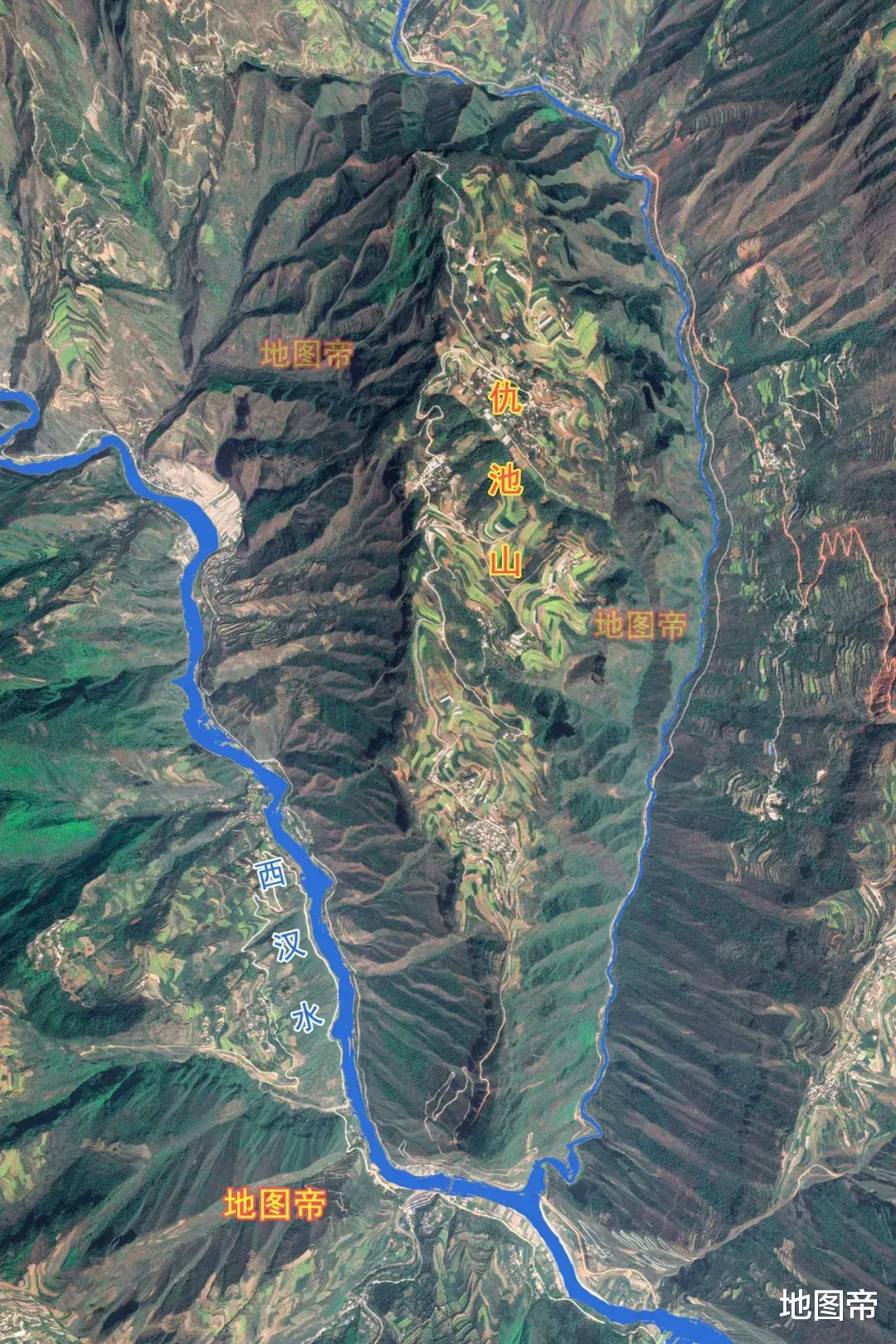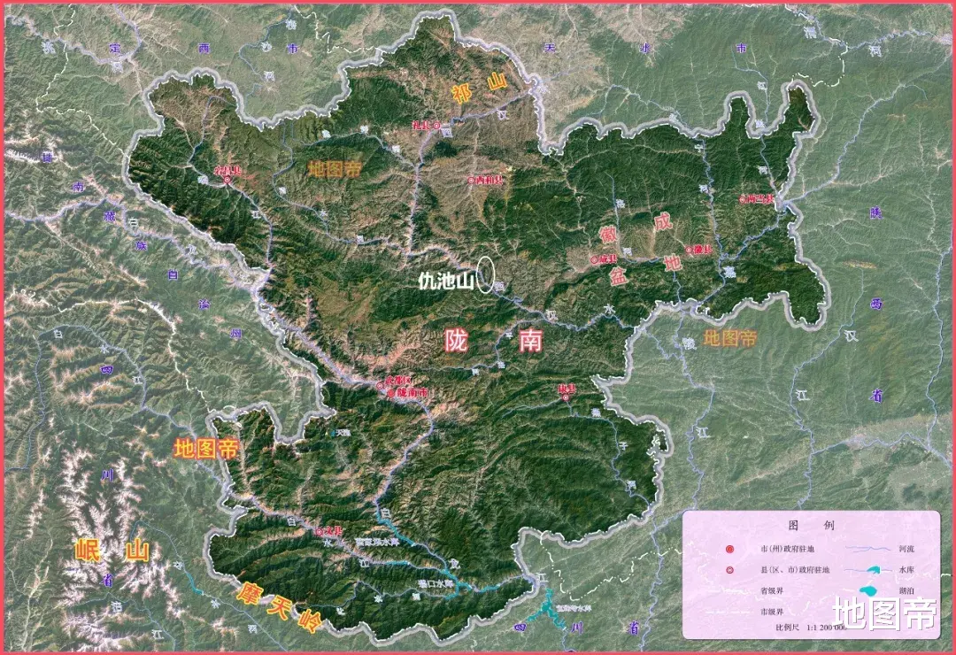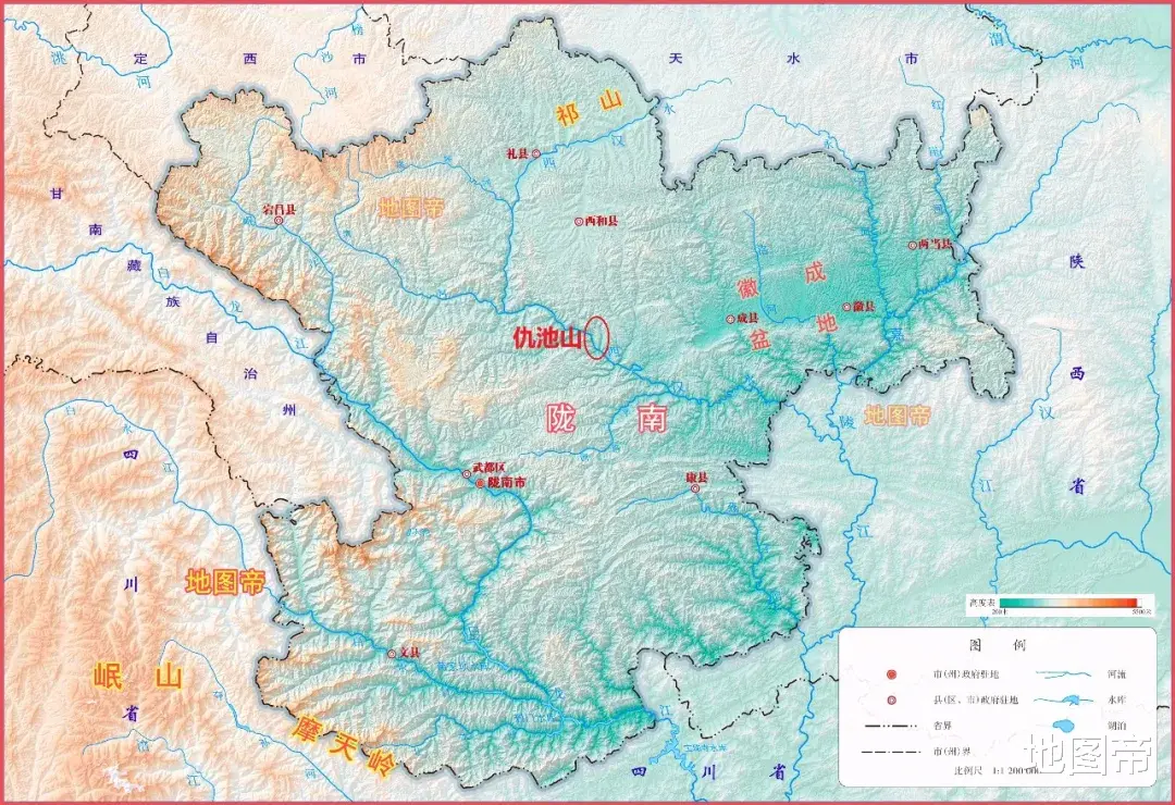 仇池山地处饮马河汇入西汉水的夹角处,在甘肃陇南市成县大桥镇。仇池山顶地方百顷,四面斗绝,三十六回羊肠蟠道,曹操以献帝名义封杨千万为百顷氐王。