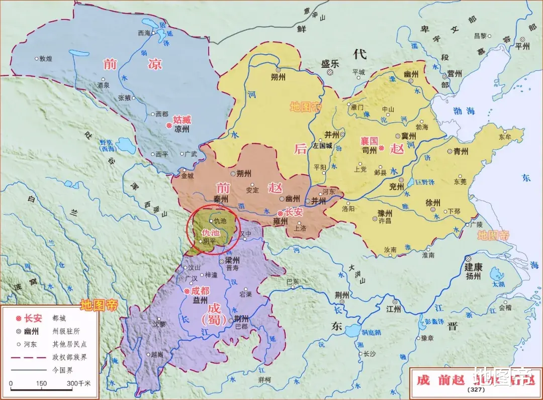 仇池虽然国祚绵长,但其疆域巅峰时期也不过武都、阴平两郡,地方太小,不在十六国之列。
