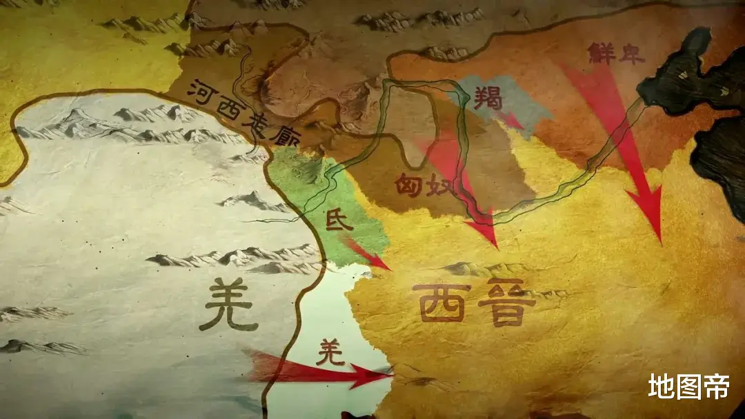 东晋控制江南半壁江山,北方则陷入五胡十六国相互攻伐的混乱局面。匈奴、鲜卑、羯、氐、羌等胡族趁中原战乱和人口锐减,不断内迁,在北方建立十六个割据势力(实际二十几个),统称为“五胡十六国”。