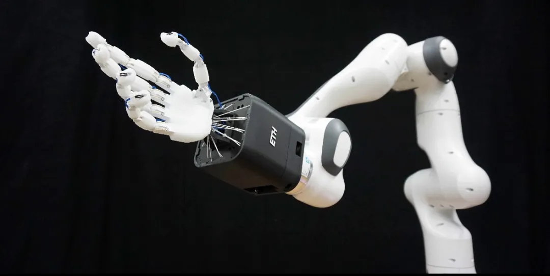 电机放在前臂,手指内部只有高强度纤维绳索模拟肌腱。