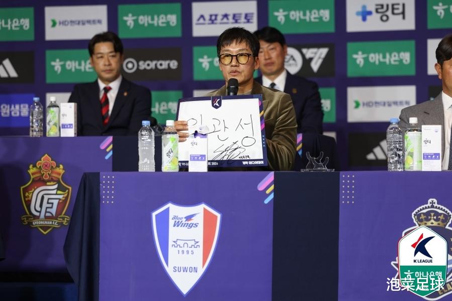 除了冠军外,新赛季各队也都提出了自己的目标。比如有的队要前六,有的队要前四等等,至于达成目标后什么奖励,基本上都是拿教练“开涮”!FC首尔队长金珍洙表示:“我们的目标是前四,如果达成目标,金基东教练要把头染色。”金基东接过话茬:“对,我染黑色,他染红色!”而安养更是拿教练开涮。安养主帅柳秉勳表示球队要进入前六,队长李昌勇让他干什么都行。李昌勇当即表示:“那就纹身吧!纹一个安养队徽!”新赛季的发布会,就这样在欢声笑语中结束,当然此刻的欢笑,周末就不会再互相出现了。剑拔弩张的联赛即将打响,人们也在期待着大戏的正式开锣。