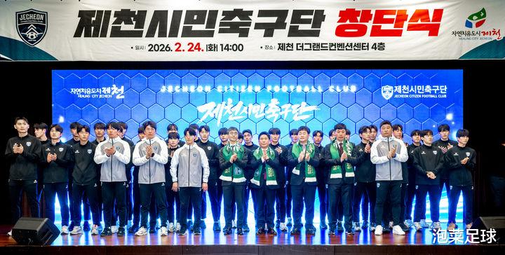随着K联赛在2027年要全面进行七级联赛升降级试行,今年很多城市也选择成立球队,加入K2或K4的球队。近日,韩国忠清北道的堤川市正式成立了自己的球队——堤川市民,他们也将参加2026赛季的K4联赛。其实堤川市很早就在谋划成立球队的事宜,几经周折,终于在2026年尘埃落定。在建队仪式上,33名球员正式亮相,大多数球员都有职业联赛的背景,虽然是一支新军,但球队还是很希望在元年有所突破。对此,堤川市体育协会会长安成国表示:“多亏了市议员、公务员等的大力帮助,球队才得以成立,与市民一起、与足球人一起,将其打造成真正的市民球队,就是最好的回报。足球俱乐部建立在市民的参与和信任之上,所有市民都是主人,我们将把公共性和透明性作为运营球队的原则,珍视过程和价值,与市民共同成长,与市民共同创造历史。"