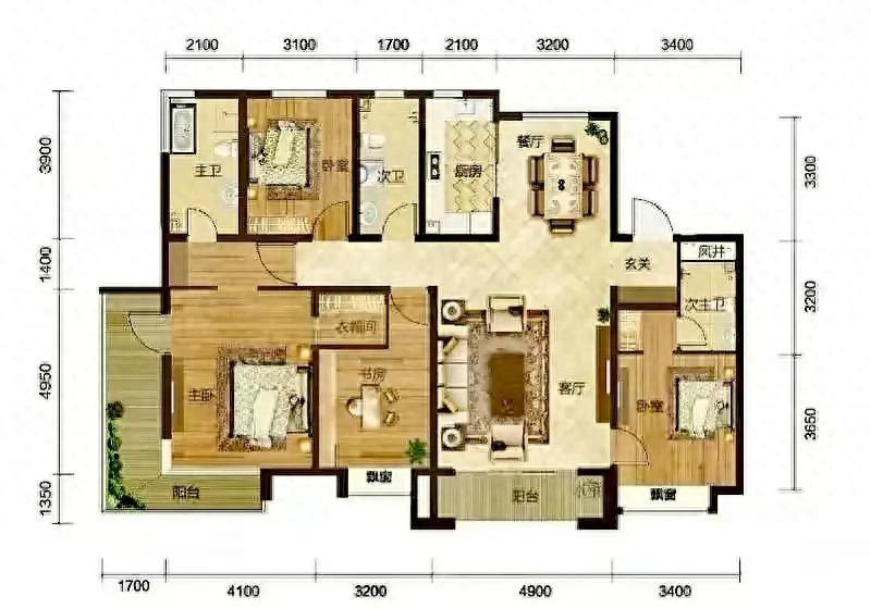 四个房间的布局,给了生活足够的弹性。主卧带独立衣帽间和阳台,是主人的专属天地;另外两个卧室,不管是给孩子、老人,还是做客房,都够用;书房可以是办公的角落,也能改成孩子的游戏房,随家庭需求灵活调整。