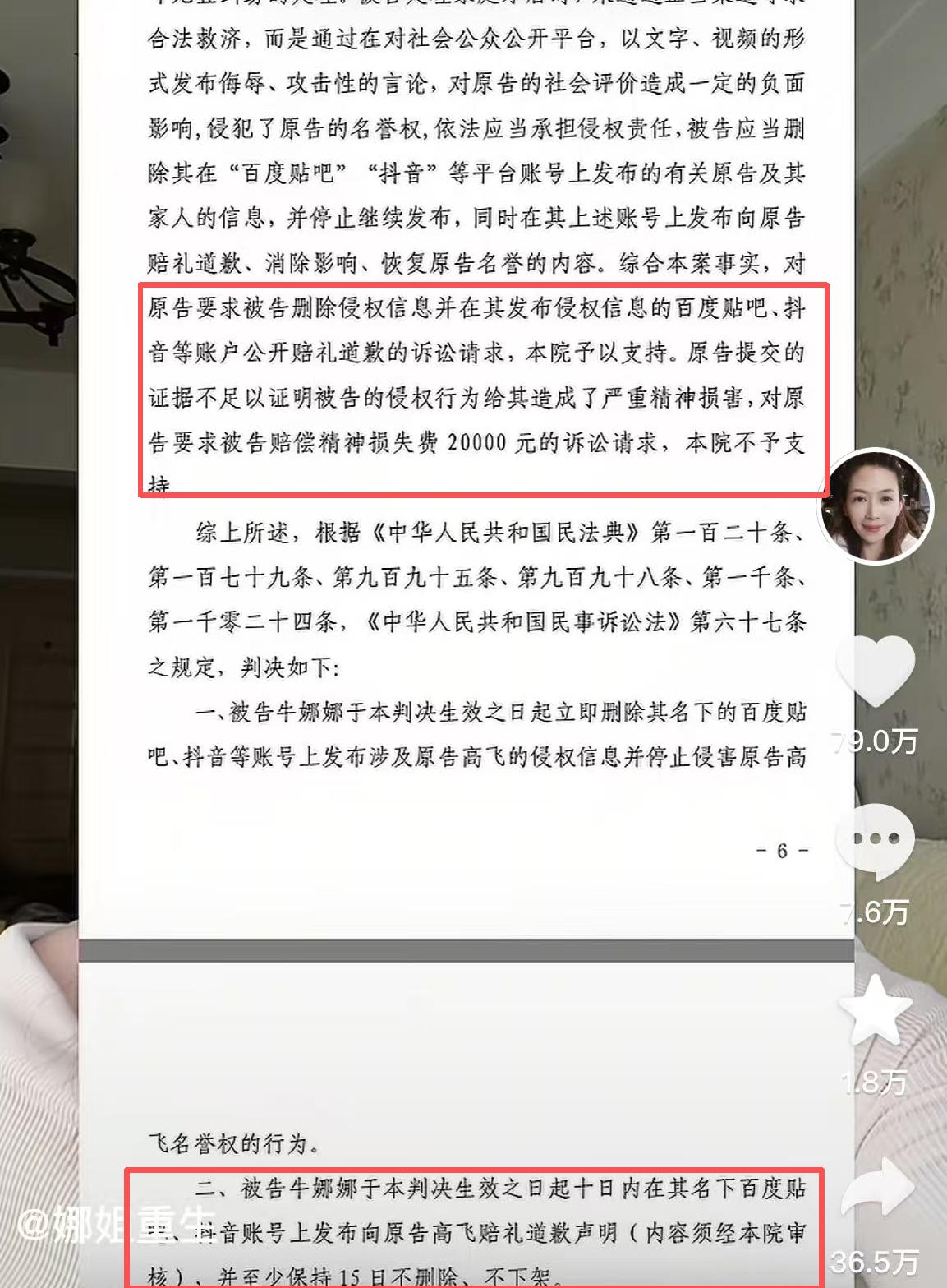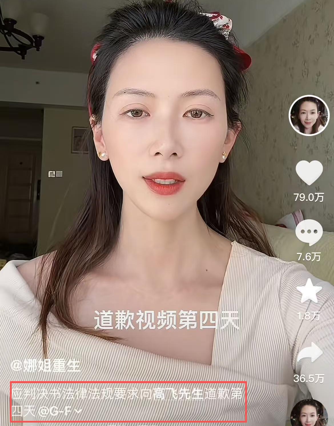 称丈夫高飞出轨了,自己作为妻子,不该在网上发布不当言论,对你表示歉意。