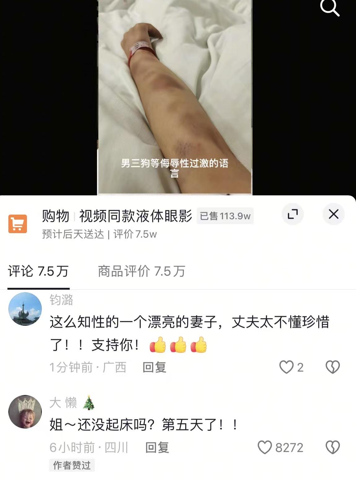 还表示,丈夫跟小三约会,被对方丈夫抓到,并被打一顿,自己不该把被打后的照片发网上。