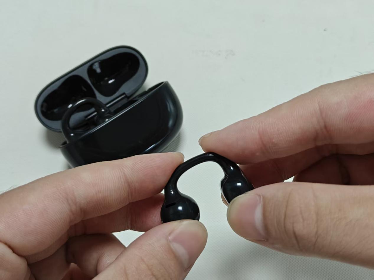 采用小圆头设计搭配多曲度软梁结构,单耳重量控制在5.4g,耳夹力度调节较为柔和,初期佩戴舒适度良好。但长时间使用后软梁对耳廓上部的压力会逐渐明显,且耳夹结构的贴合度在运动时会出现轻微松动。