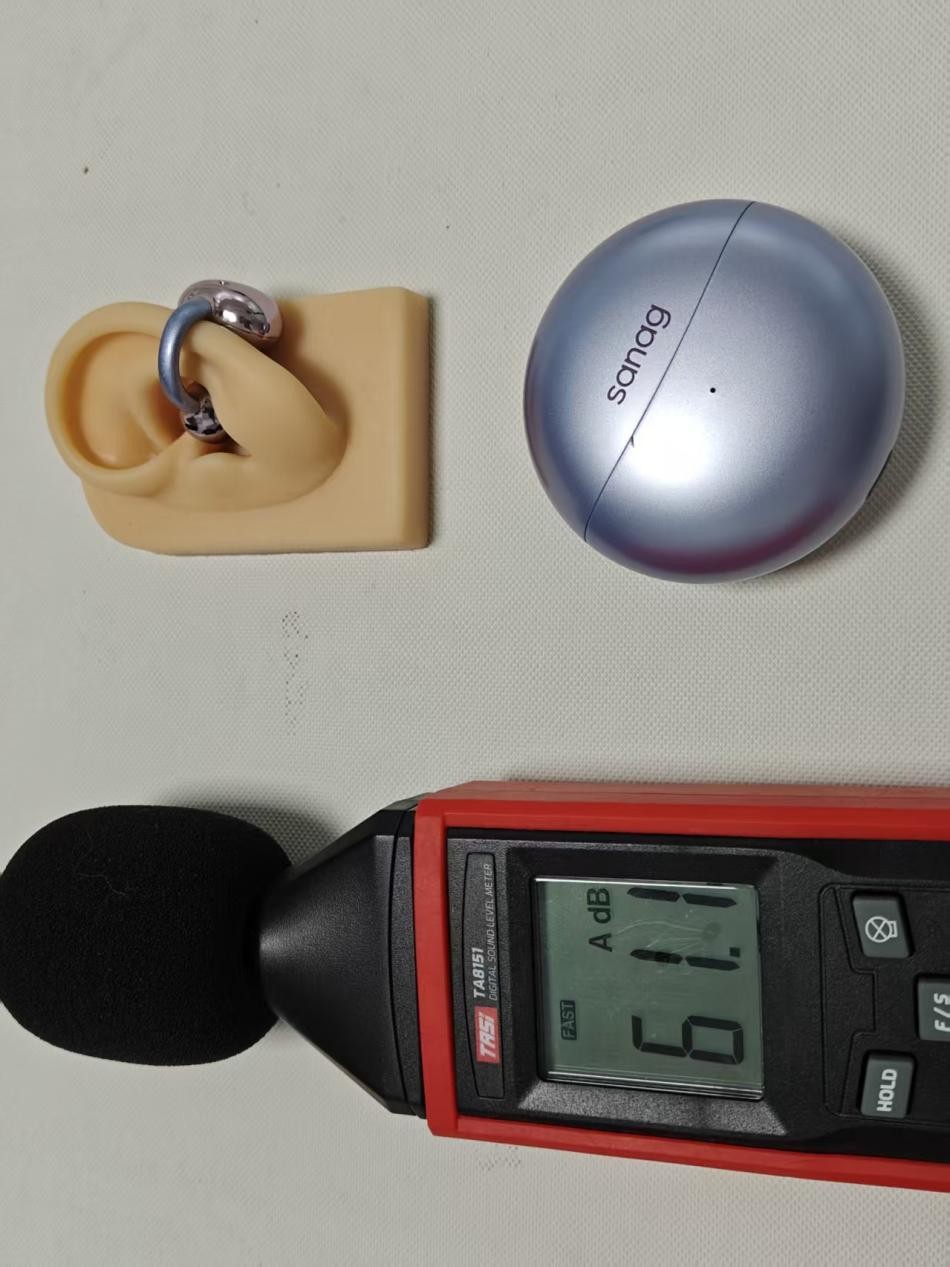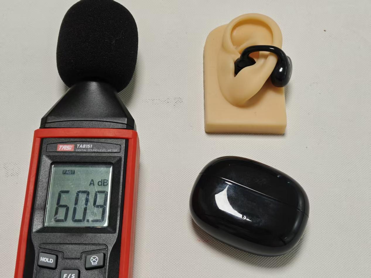 开放式耳机的通病就是漏音了,它的喇叭是耳道口外的,声音通过空气传播进入耳朵里,不可避免地会有声音向外扩散到周围,离得近的人就有可能听到。一些不错的品牌就会有好的防漏音方案,下面是这三款产品,在同样的位置,50%放同一首歌的漏音情况