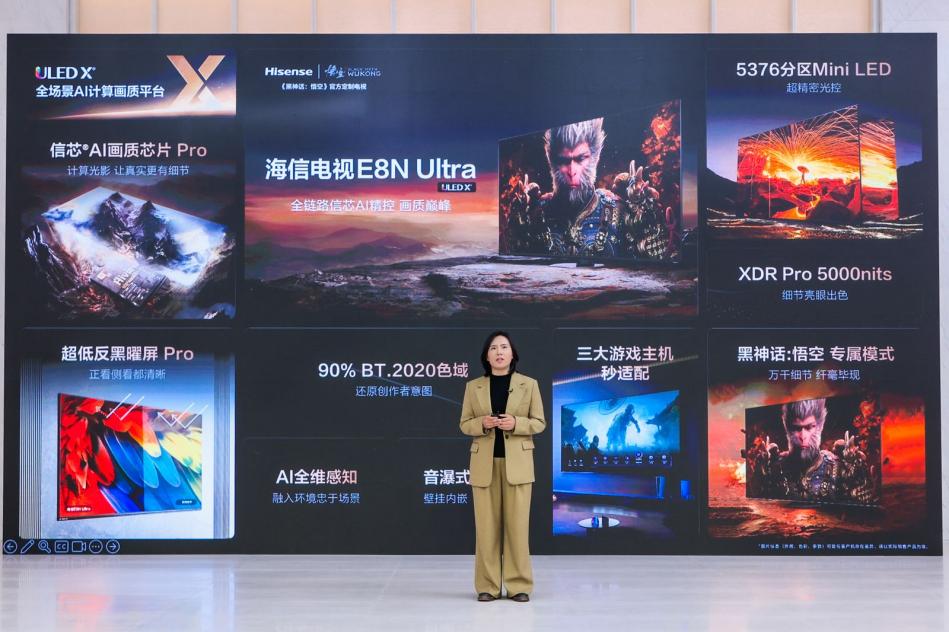 那么具体来看,海信电视E8系列画质巅峰新作究竟“新”在了哪?又为什么能跟备受海内外期待的单主机作品《黑神话:悟空》达成合作,成为官方定制电视?答案,就在于以全场景AI计算画质,所实现的技术嬗变。