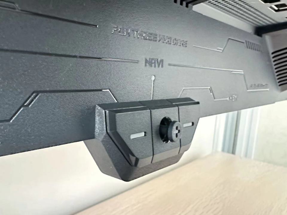 ROG XG27UQDMS安装超级省心。安装底座与支架时,只要对准位置,拧紧底部那颗手拧螺丝,就稳稳当当了;支架与显示器本体的连接更简单——把显示器背部接口对准支架卡槽,轻轻一放,“咔嗒”一声自动锁紧。全程不到两分钟,小白也能操作自如。