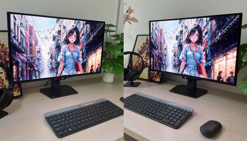 这台ROG XG27UQDMS搭载的是一块26.5英寸4K QD-OLED面板。OLED的好,真的是用上才明白。