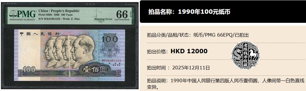 你们才它在拍卖会上拍出了多少钱?1.2万港币,相当于一张1.07万元!