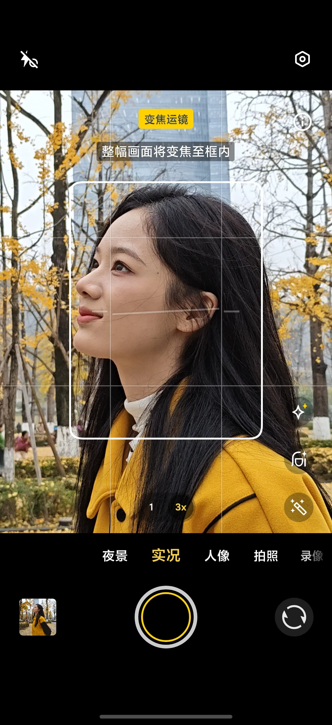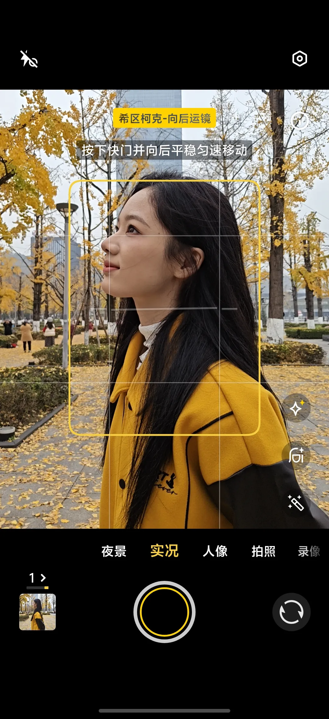 更具突破性的是“大师级Live运镜”的引入。高光慢动作运镜可自动完成从常速到慢动作的丝滑过渡,并同步变焦放大主体,一键复刻明星红毯的高光时刻;变焦运镜支持1倍到3倍的无缝切换,让“人在景中”的环境叙事与“面部特写”的情绪表达一气呵成;希区柯克运镜则通过主体不变、景深压缩的电影级技法,在1-2倍变焦区间释放出强烈的视觉张力。甚至,S50系列还内置了冬日雪花特效,在Live模式中实时模拟大雪纷飞的浪漫场景,配合柔光与冷白皮滤镜,让季节氛围不再受制于真实天气。这些曾需专业设备与后期技巧才能实现的运镜语言,如今被浓缩为几个简洁的选项,让街拍出片率与旅拍故事感同步飙升。