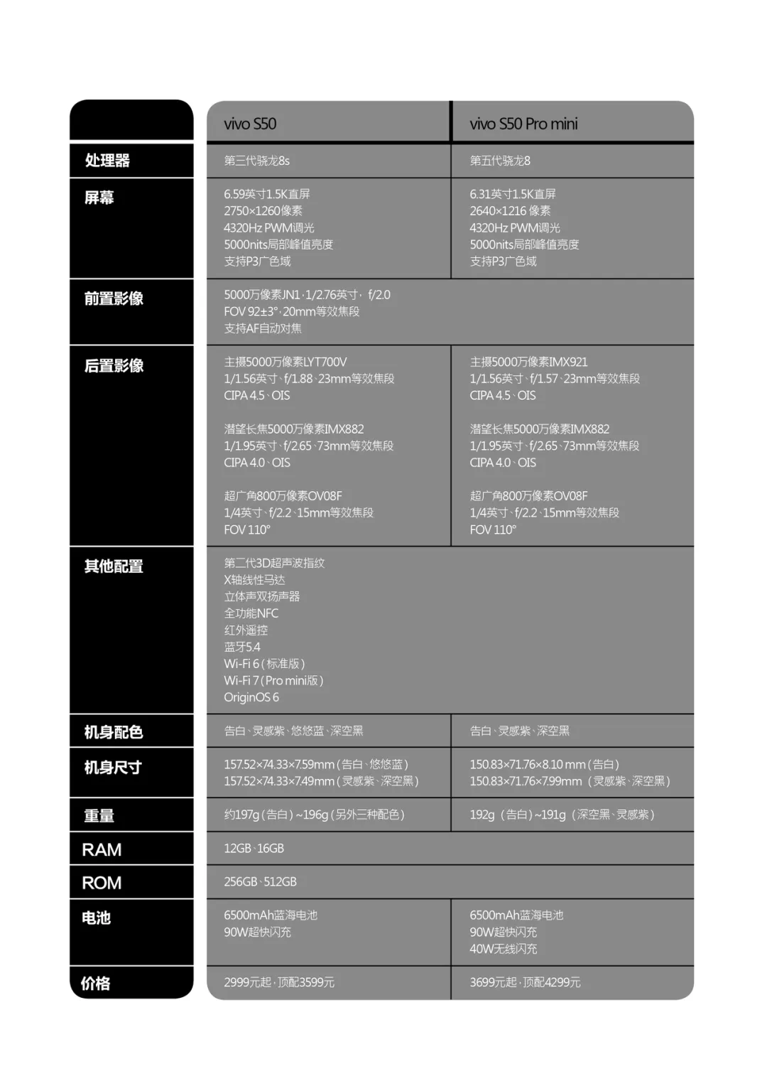 实际上,11月底韩伯啸就用“旗舰三大件”给S50系列定了调:第五代骁龙8旗舰平台(Pro mini版机型)、IMX882潜望长焦、第二代3D超声波指纹等,没有“刀法”余地。这套组合放在过去,是正统旗舰的“入门三件套”,如今却被蓝厂一次性下沉到S系列,信号再明确不过——vivo想在中端战场继续创造自己的影像话语权,让“长焦看蓝厂”从一句广告词变成价格段共识。当别家还在用“Pro独潜望”制造差价,蓝厂率先把潜望配置放到更亲民的定位——表面是堆料,实则是重新划定赛道规则。毕竟,谁先把这些原本旗舰级的体验做成“更多人可以享受到的东西”,谁就能先一步占领用户心智。
