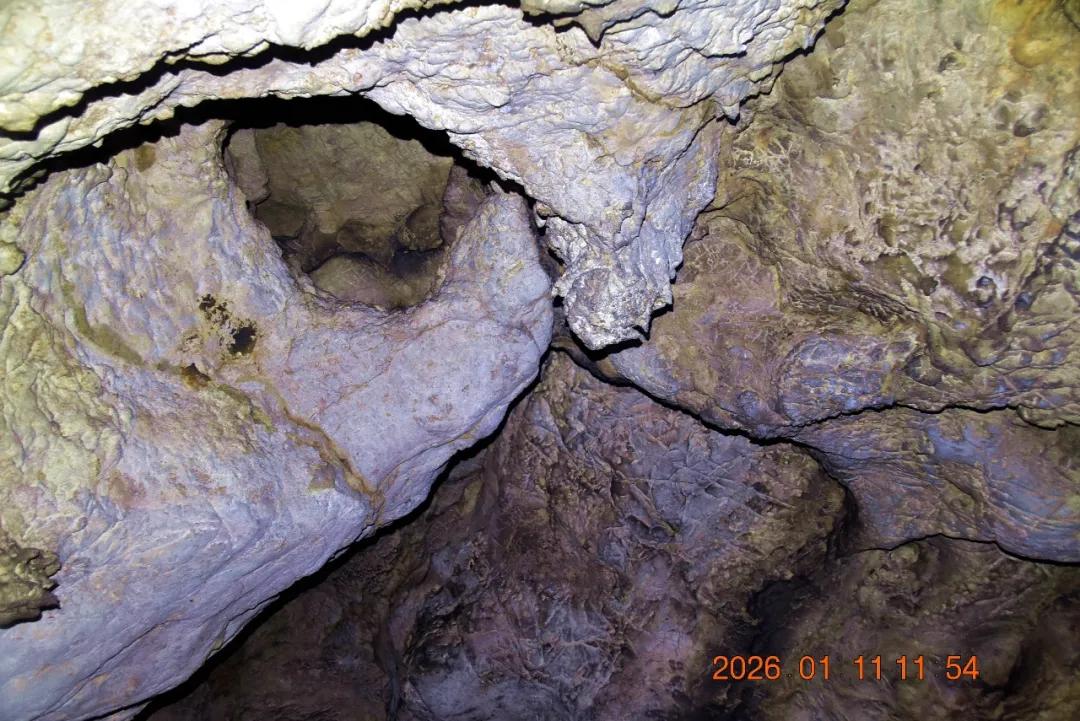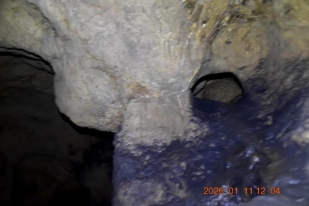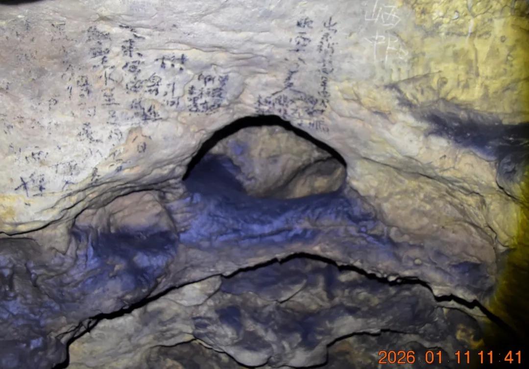 进来之后,左面有一个侧洞,十几二十米深,中间有两个洞口相通着,有点意思。