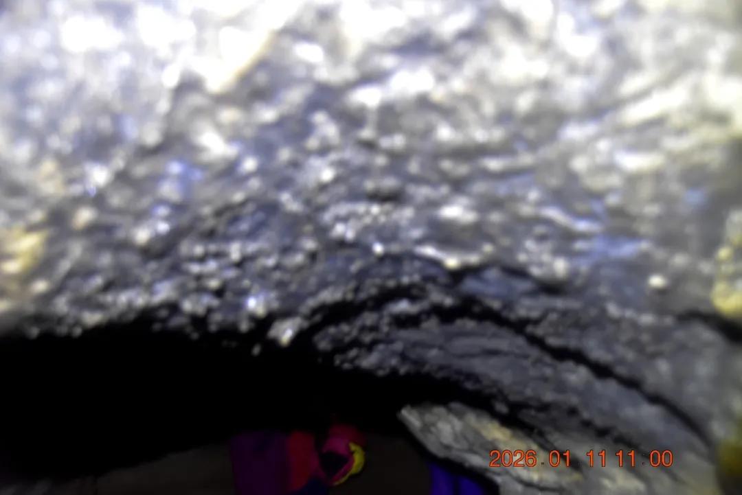 爬进第一个低处来,我突然有点快要窒息了的感觉,感觉气不够用,紧张感,害怕,我甚至想着不往里进了,马上出去吧。不玩了,这里心理素质低一点的人,完全有可能在这里窒息晕过去,还是有一定风险的。