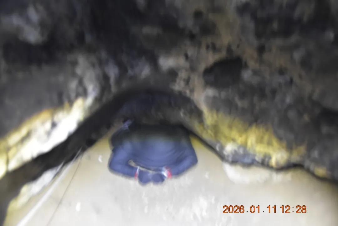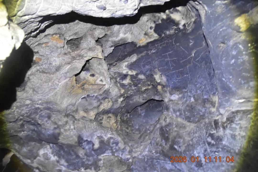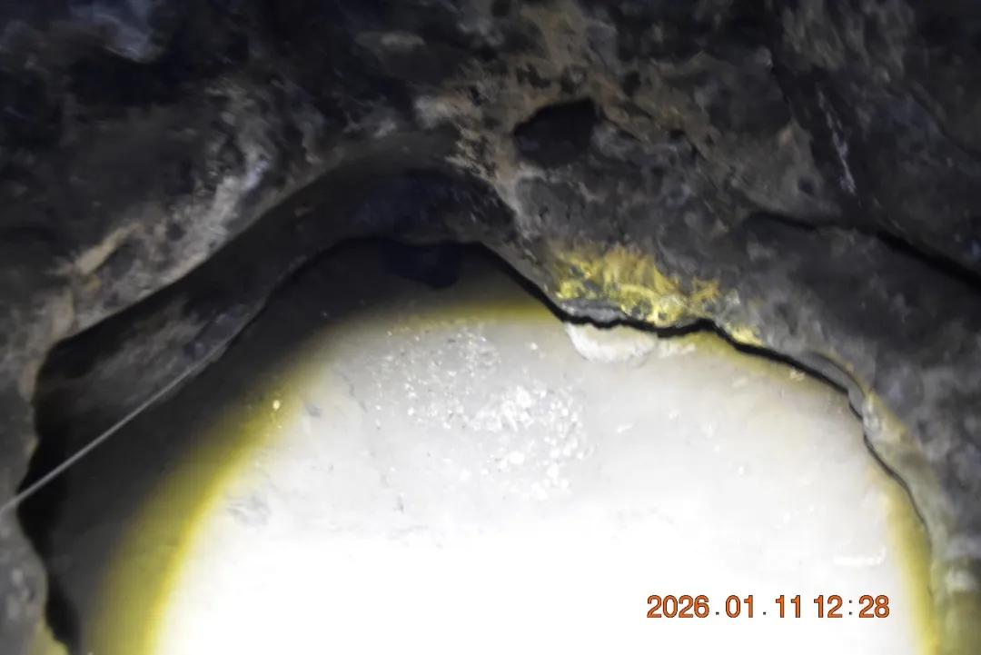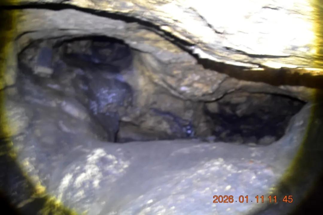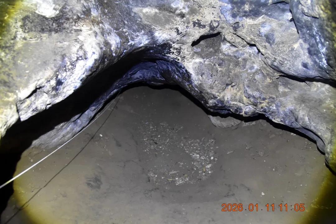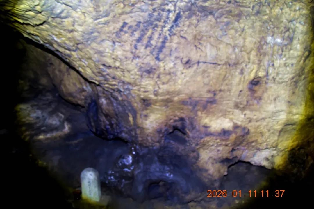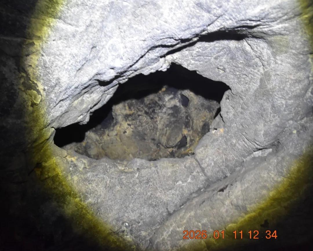 这应该是另一个侧洞吧,洞口有几块石头,是不是就是他们说的封了的那个洞?村民说有一个侧洞被封了,出过事,扔石头进去,石头滚落下去,最后都能听到水声。