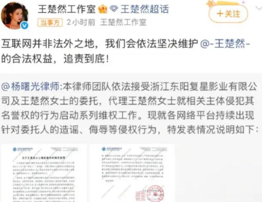 近期内娱维权潮再起,继王楚然委托律师发布告黑声明后。