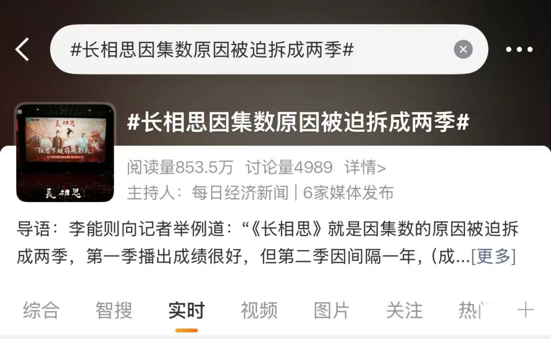比如《长相思》,原本完整的长篇叙事被迫分为两季先后上线,一部剧拆成两次播。