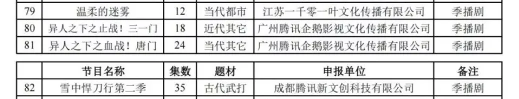 优质的案例在“21条”出台后的季播剧备案公示里就能找到: