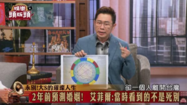 艾菲尔近期登上节目《娱乐头版头》,回顾3年前在《新闻挖挖哇》中,对大S与具俊晔的婚姻所做的预测,他透露2人的婚姻是「天王星带来的缘份」,也象征他们的关系会是短暂、意外的,如果按照天王星离开的角度计算,2人关系结束的时间则是3年。