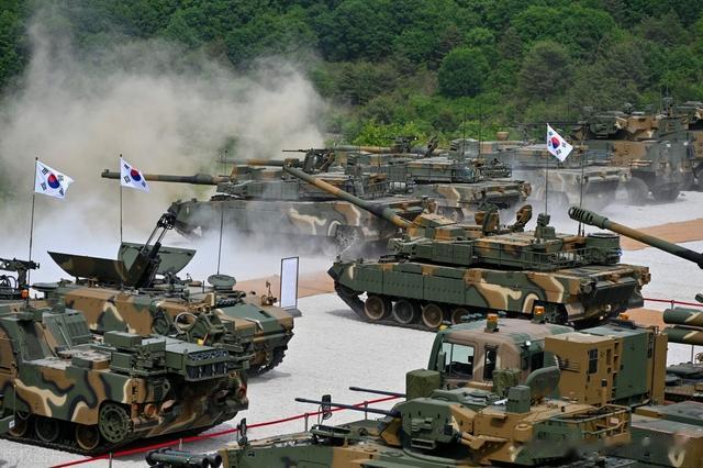 从武器装备来看,韩国陆军实力较为雄厚,总人数约为 50 万,是韩国军队中规模最大的军种。陆军拥有约 2500 辆坦克,其中 K1、K2 等先进型号坦克具备强大的火力和防护能力。K2 主战坦克装备德国莱茵金属 120 毫米滑膛炮,配备德国 MTU 发动机,综合性能优异,堪称韩国陆军的王牌装备之一。炮兵方面,韩国陆军拥有大量火炮,K9 自行火炮是其代表性装备,已经出口到芬兰、挪威等 11 个国家,并且韩国还专门研制了神剑制导炮弹,射程可达 50 公里,误差仅 3 米,大大提升了 K9 的打击精度和威力。防空部队则装备了 400 余套 K30 近程防御系统和天弓 2 中程防御系统,具备拦截弹道导弹的能力,为韩国的领空安全提供了重要保障。