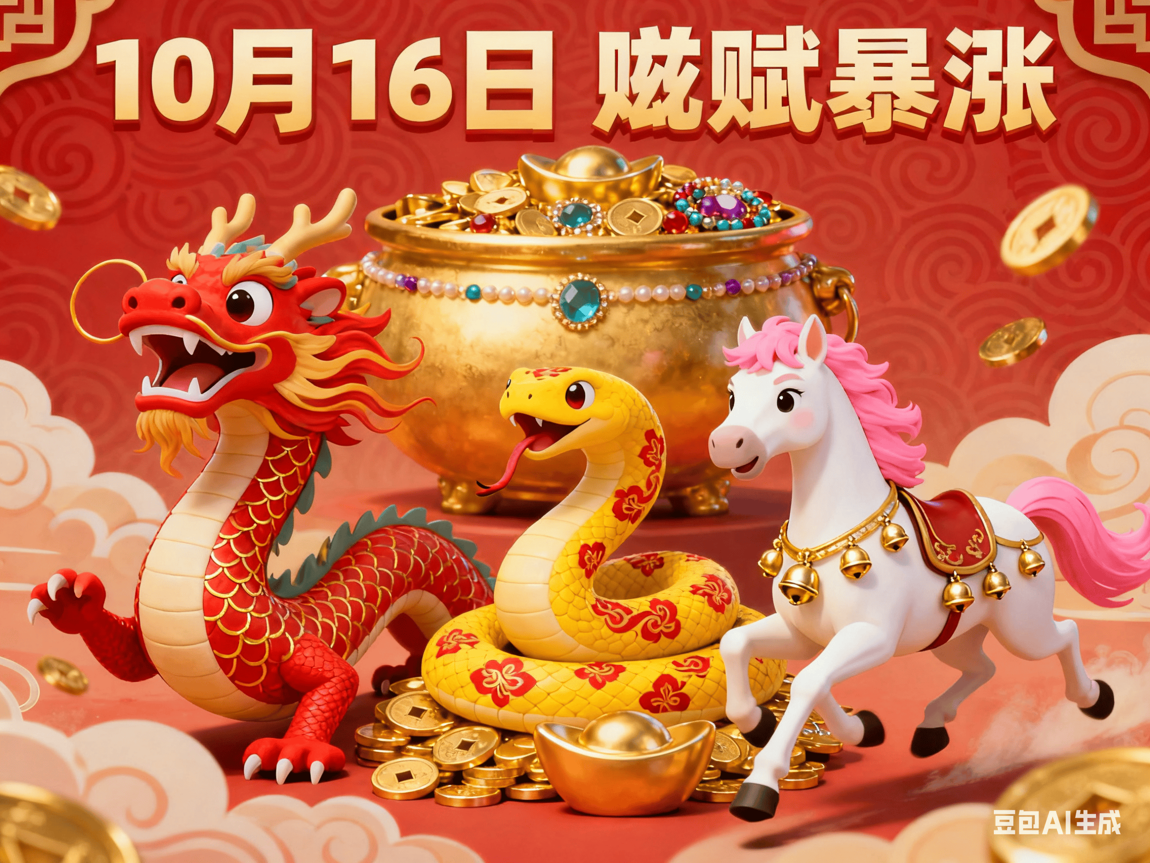 在神秘莫测的命运长河中,财运就像一颗闪耀的星辰,吸引着每个人的目光。而生肖运势与财运之间似乎也存在着某种微妙的联系。据多方运势分析和民间传统说法,在10月16日这一天,有3个生肖将会迎来财运的暴涨,仿佛是命运之神突然打开了财富的大门,让我们一起来看看是哪几个幸运的生肖吧!