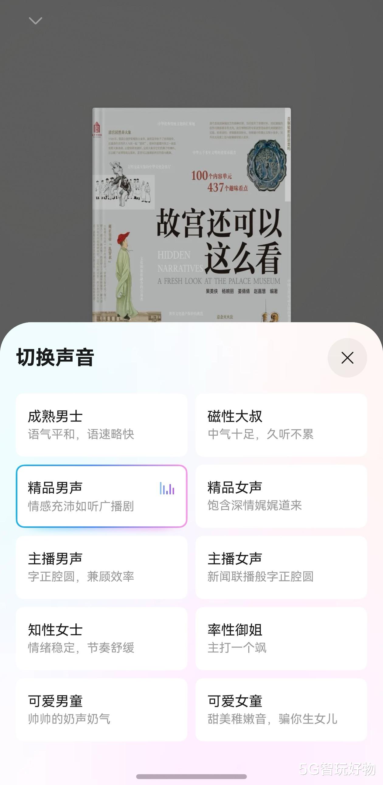晚上下班后,我还习惯用华为阅读来听书。我特地选了“精品男声”的音色。当那浑厚深沉的声音,缓缓讲述着故宫红墙内的秘闻时,我感觉自己仿佛穿越了。曾经看到的金瓦红墙,在耳边变成了一个个鲜活的故事,历史的深邃感瞬间拉满。