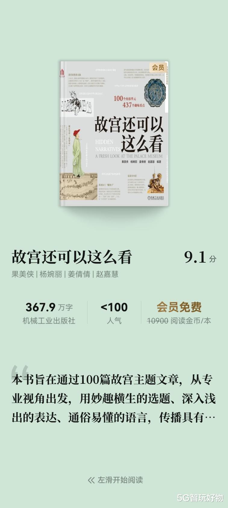 走出展厅时,人还是有点恍惚的,感觉自己刚在故宫的历史长河里游了一趟,有太多震撼和感动来不及消化。我总觉得意犹未尽,感觉这六百年的风云,光靠走马观花是远远不够的。没想到,最近使用华为阅读时,它给我带来了惊喜——推出了“故宫建院100周年”主题书单!结合最近VIP会员权益的升级,出版书籍新增了不少。平台联合多家出版社,将之前需要额外付费的书籍也纳入了会员权益。这份故宫主题书单里的大多数出版书籍都可以免费阅读,太方便我回味这精彩的展览了。
