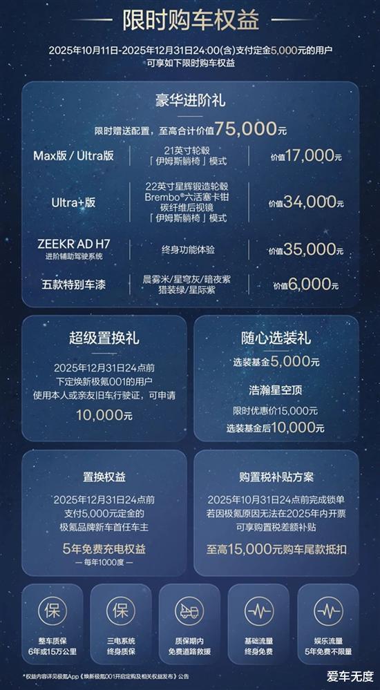 日前,焕新极氪001(2026款)正式上市,新车共推出四款车型,售价区间为26.98-32.98万元,可限时叠加1万元超级置换金,限时售价25.98-31.98万元。