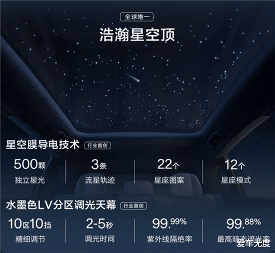 同时,新车配备“浩瀚星空顶”,还可通过后排空调出风口区域的控制屏来调整样式,豪华感受不输百万豪车。